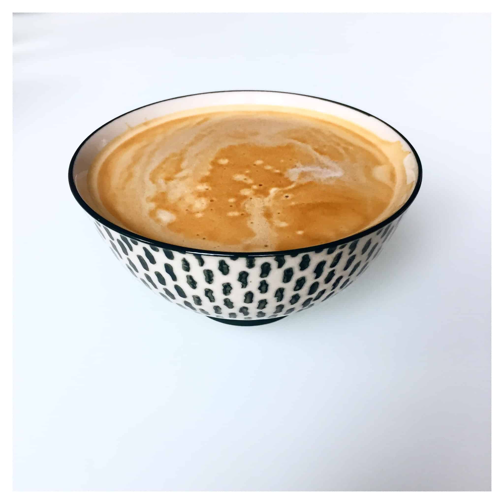 Lorsque le café est prêt, le verser dans une tasse , ajouter le lait et le sirop d’agave et voici un café au lait sans lactose et sans sucres raffinés 🙂